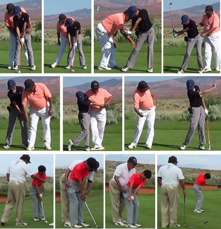 早速見せて頂きましたが、男の子ですからどうしても力で飛ばそうとされ、力みが凄かったです。 先ずは力まない方が飛ぶ事を理解してもらうのにしっかりとレッスンしていきましたので、210ヤードだった飛距離を250ヤードと伸ばされました。